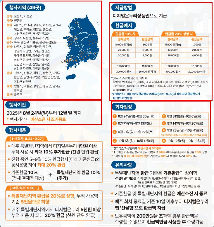 • 1~5회차: 기존 10% 환급 + 재난지역 10% 추가 (합계 20%)