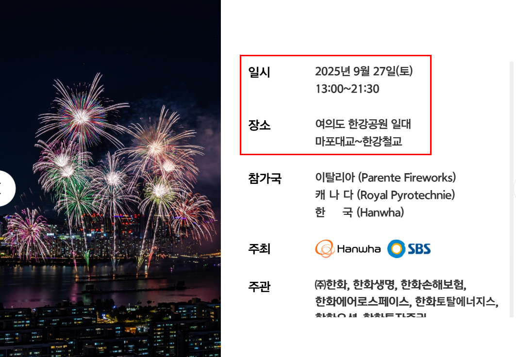 - 응모 채널: 한화 불꽃축제 공식 홈페이지, 인스타그램 등