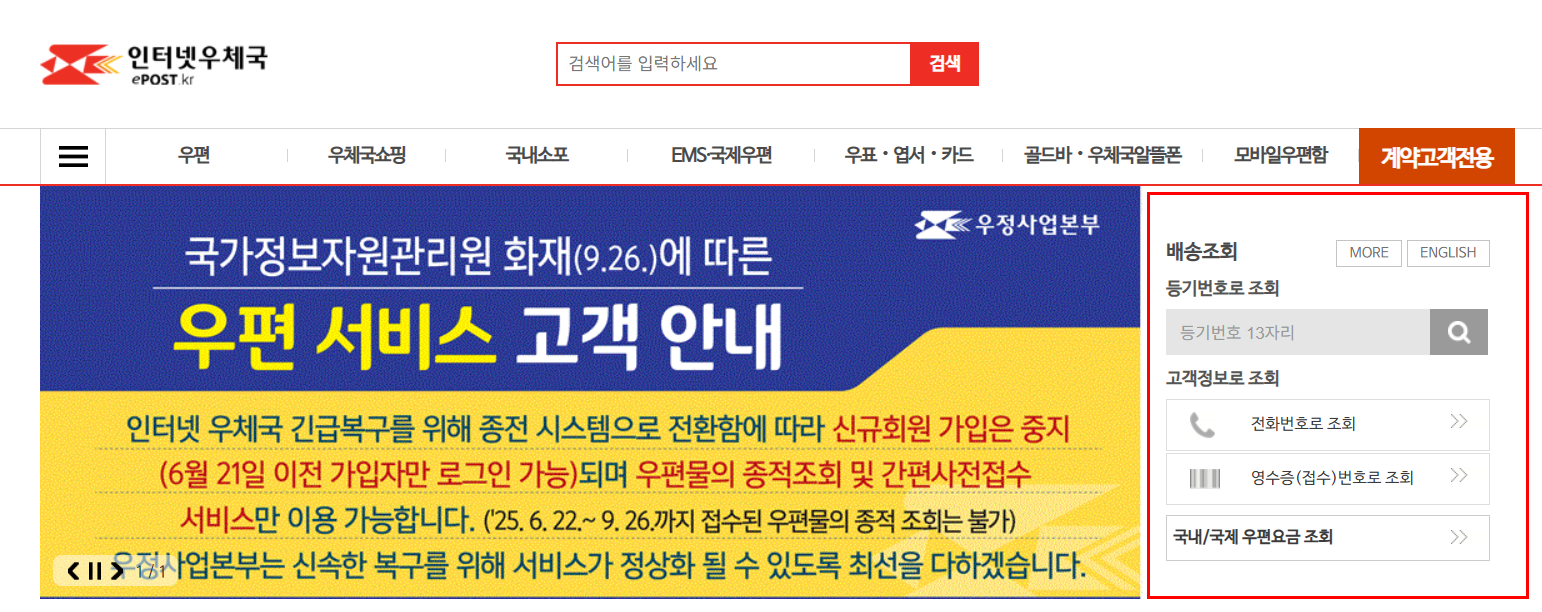 최근 국가정보자원관리원 화재 등으로 인해 일시적으로 우체국 택배조회가 되지 않는 상황이 있었습니다. 이럴 때는: