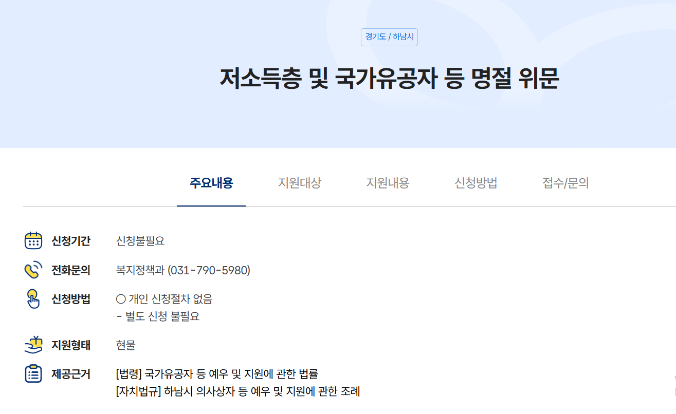 - 지원 금액: 3~7만 원 현금 위문비